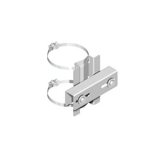 Supporto con doppia fascetta per pali ø 50 ÷ 90 mm - staffa di fissaggio apparecchi da 150 mm - interasse di fissaggio 46 ÷ 130 mm - inox aisi 430