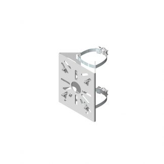 Supporto telecamera per pali ø 60 ÷ 280 mm - parte frontale preforata 150x180x2 mm - interassi asole orizzontali / verticali 60 ÷ 125 mm - interassi asole inclinate a 45° 60 ÷ 177 mm - con fascette inox - inox aisi 430