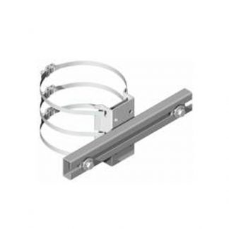 Supporto con tripla fascetta per pali ø 50 ÷ 90 mm - staffa di fissaggio apparecchi da 300 mm - interasse di fissaggio 156 ÷ 280 mm - inox aisi 430