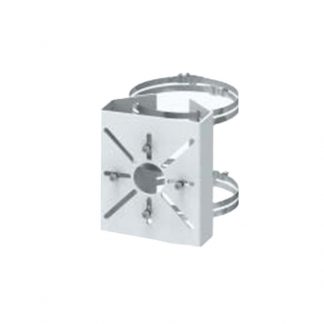Supporto telecamera per pali ø 60 ÷ 130 mm - parte frontale preforata 150x180x2 mm - interassi asole orizzontali / verticali 60 ÷ 125 mm - interassi asole inclinate a 45° 60 ÷ 177 mm - con fascette inox - bianco