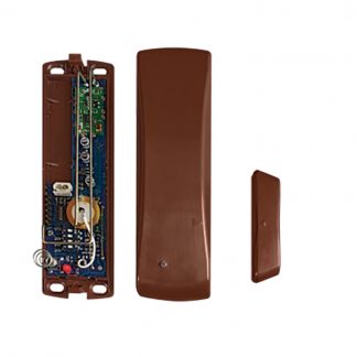 Confezione da 15 pezzi. Contatto magnetico MARRONE radio monocanale 868 MHz FSK (compatibile con centrale dualband), supervisionato, segnalazione di stato. Per infissi non metallici. Tamper antiapertura. Assorbimento a riposo: 5 μA, assorbimento in trasmissione: 40 mA. Dimensioni LxHxP 81x34x19 mm. Batteria al litio SBT08 3,6V 1,2Ah in dotazione.