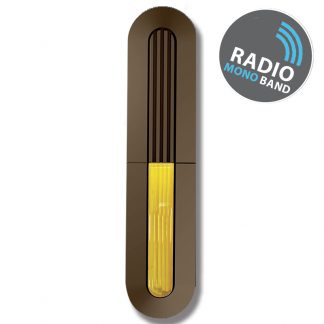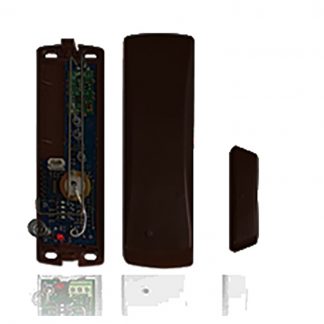Contatto magnetico MARRONE radio monocanale 868 MHz FSK (compatibile con centrale dualband), supervisionato, segnalazione di stato. Per infissi non metallici. Tamper antiapertura. Assorbimento a riposo: 5 μA, assorbimento in trasmissione: 40 mA. Dimensioni LxHxP 81x34x19 mm. Batteria al litio SBT08 3,6V 1,2Ah in dotazione.