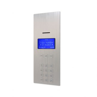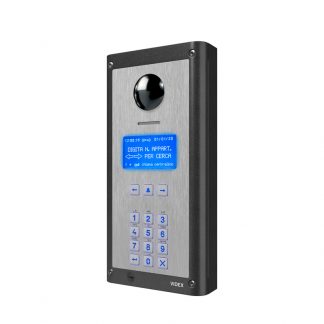 Tastiera audio digitale con rubrica elettronica serie 4000 per sistema GSM 4G, 2 moduli, antivandalica (IK07) in acciaio satinato, lettore di prossimità RFID integrato. Collegamento GSM 4G. Servizio repertorio nomi. Display grafico128x64px, retroilluminazione blu. Placca antivandalica IK07 acciaio inox spazzolato. Pulsanti tastiera 15. Max 500 utenti e max 500 codici. Frequenza RFID 125KHz. Programmazione: tastiera/USB/SMS. Interfacce RS-485/USB. Numeri Dial to open 2000. Lettore di chiavi di prossimità integrato fino a 2000 utenti. Opz. messaggi vocali. Log eventi, 8000 eventi. Bootloader, 10 fasce orarie. Montaggio serie 4000 modulare. Dimensioni 2 moduli. 1 relè. Voltaggio relè max 24Vac/dc 2A. Ingresso ausiliario, uscite ausiliarie open collector. Ingresso PTE, alimentazione 12Vdc. Temperatura di lavoro -20°+60°. Dimensioni: 103 x 240 x 34 mm (L x H x P).