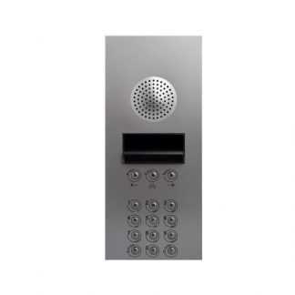 Tastiera audio digitale con rubrica elettronica serie 4000 per sistema GSM, 2 moduli, antivandalica (IK07) in acciaio satinato, lettore di prossimità RFID integrato. Collegamento GSM 2G/3G. Servizio repertorio nomi. Display grafico128x64px, retroilluminazione blu. Placca antivandalica IK07 acciaio inox spazzolato. Pulsanti tastiera 15. Max 500 utenti e max 500 codici. Frequenza RFID 125KHz. Programmazione: tastiera/USB/SMS. Interfacce RS-485/USB. Numeri Dial to open 2000. Lettore di chiavi di prossimità integrato fino a 2000 utenti. Opz. messaggi vocali. Log eventi, 8000 eventi. Bootloader, 10 fasce orarie. Montaggio serie 4000 modulare. Dimensioni 2 moduli. 1 relè. Voltaggio relè max 24Vac/dc 2A. Ingresso ausiliario, uscite ausiliarie open collector. Ingresso PTE, alimentazione 12Vdc. Temperatura di lavoro -20°+60°. Dimensioni: 103 x 240 x 34 mm (L x H x P).