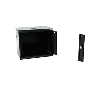 Armadio rack a parete, fino a 9U rack da 19", fino a 100 Kg di carico, con ventilazione e passacavi. Profondità 600mm. Fabbricato in acciaio SPCC. Colore nero. Dimensioni interne: 400 x 465 x 600 mm (HxLxP).
