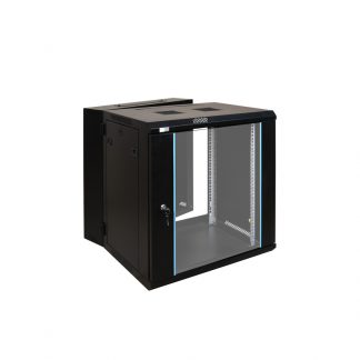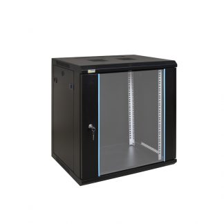 Armadio rack a parete. Fino a 12U rack da 19". Fino a 60 Kg di carico. Con ventilazione e passacavi, 2 ventole e vassoio inclusi. Striscia di alluminio di 6 prese. Panel laterale smontabile. Parte inferiore e frontale ventilata per raffreddamento, include 2 ventole, include 1 vassoio. Materiale: acciaio SPCC. Colore nero. Dimensioni esterne: 634 (H) x 600 (L) x 600 (P) mm. Dimensioni interne: 631.6 (H) x 597.6 (L) x 597.6 (P) mm.