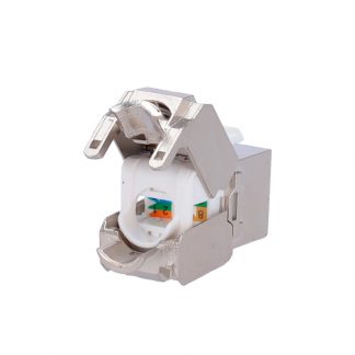 Connettore per cavi FTP. Connettore uscita RJ45, compatibile con FTP categoria 6. Facile installazione senza necessità di strumenti. Dimensioni: 38 (P) x 16 (H) x 20 (L) mm.