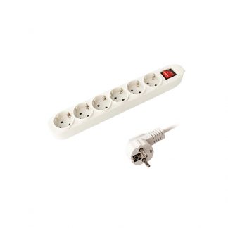 Multipresa di corrente (6 x SCHUKO) colore bianco. 6 uscite fino a 250VAC / 16 A max., interruttore on/off.