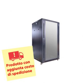 Armadio rack per pavimento, fino a 22U rack da 19"(600*600). Fino a 800 Kg di carico, con ventole e passacavi, 2 ventole, 2 vassoi e PDU 6 prese. Fornito assemblato. Dimensioni esterne: 1074.4 (H) x 600 (L) x 600 (P) mm (Altezza senza ruote).