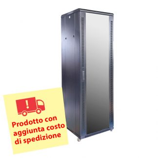 Armadio rack per pavimento fino a 37U rack da 19"(600*600). Fino a 800 Kg di carico, con ventole e passacavi 2 ventole, 2 vassoi e PDU 6 prese. Fornito assemblato. Dimensioni esterne: 1737,9 (H) x 600 (l) x 600 (P) mm. Materiale acciaio SPCC.