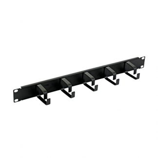 Organizzatore di cavi, misura massima 1U, adatto per rack, robusto e resistente. Colore nero. Materiale: metallo.