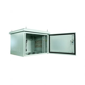 Armadio rack a parete, fino a 9U rack da 19", fino a 100 Kg di carico. Con griglie di ventilazione e passacavi. Grado di protezione IP65. 8 Ingressi per cablaggio. Tettuccio che si estende intorno al rack per proteggerlo dalla pioggia. 4 Ganci. Fabbricata in acciaio SPCC. Colore GRIGIO. Dimensioni: 600 (L) x 450 (P) mm.