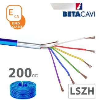 cavo allarme LSZH 8x0,22+T+S CEI-UNEL 36762 C-4 direttiva CPR classificato in EUROCLASSE ECA. Matassa da 200m BLU