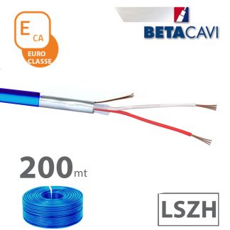 cavo allarme LSZH 2x0,22+T+S CEI-UNEL 36762 C-4 direttiva CPR classificato in EUROCLASSE ECA. Matassa da 200m BLU