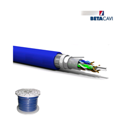 cavo allarme con armatura in acciaio inox e guaina esterna in Duraflam LSZH di colore blu. 2x0,75+4x0,22+T+S CEI-UNEL 36762-C4 bobina da 1000m. Euroclasse ECA.