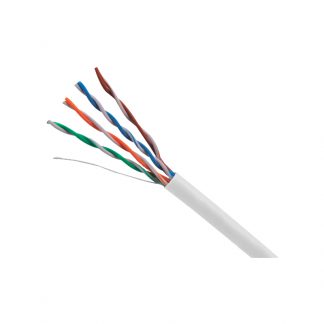 Cavo UTP CAT5E ECA. Larghezza di banda fino a 200MHz. Guaina in DURAFLAM LSZH colore BIANCO. Diametro esterno: 4,8mm. Scatola da 305m