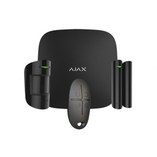 Kit centrale Ajax - (PN: 20287) - Colore nero. Centrale wireless doppia tramite GPRS / LAN - Bidirezionale - Certificato grado 2 - Protocollo Jeweller 868MHz - Antenna interna distanza spazi aperti 2000 m - Supervisione da 12 s - Anti tampering - Anti-Inibizione - Batteria di backup - Supporta fino a 100 dispositivi wireless collegati - Fino a 50 utenti - Alimentazione 110-250 V AC - Il kit comprende hub, rilevatore di movimento, rilevatore apertura e telecomando con pulsante di emergenza. Uso interno - Comprende supporto.
