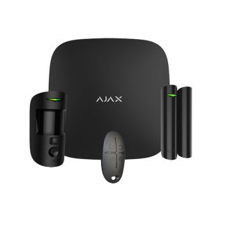 Kit centrale Ajax - (PN: 20291) Colore nero. Kit di allarme professionale. Certificato Grado 2. Comunicazione Ethernet e doppia SIM GPRS. Senza fili868 MHz Jeweller e Wings, Ajax HUB 2, 1 PIRCAM. 1 Contatto magnetico e 1 telecomando. Il kit comprende il pannello di controllo Hub2-B, un fotorilevatore AJ-MotionCam-B, un contatto magnetico DoorProtect-B e un telecomando SpaceControl-B.