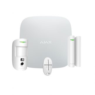 Kit centrale Ajax - (PN: 20293) Colore bianco. Kit di allarme professionale. Certificato Grado 2. Comunicazione Ethernet e doppia SIM GPRS. Senza fili868 MHz Jeweller e Wings, Ajax HUB 2, 1 PIRCAM. 1 Contatto magnetico e 1 telecomando. Il kit comprende il pannello di controllo Hub2-W, un fotorilevatore MotionCam-W, un contatto magnetico DoorProtect-W e un telecomando SpaceControl-W.