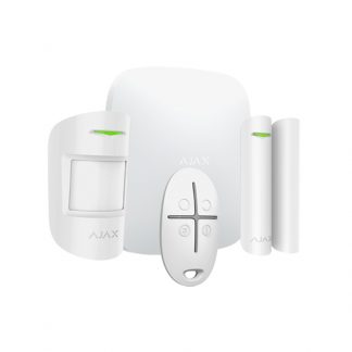 Kit centrale Ajax - (PN: 20288) - Colore bianco. Centrale wireless doppia tramite GPRS / LAN - Bidirezionale - Certificato grado 2 - Protocollo Jeweller 868MHz - Antenna interna distanza spazi aperti 2000 m - Supervisione da 12 s - Anti tampering - Anti-Inibizione - Batteria di backup - Supporta fino a 100 dispositivi wireless collegati - Fino a 50 utenti - Alimentazione 110-250 V AC - Uso interno - Il kit comprende hub, rilevatore di movimento, rilevatore apertura e telecomando con pulsante di emergenza. - Comprende supporto.