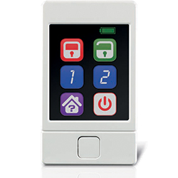 Telecomando bidirezionale 868 MHz FSK. Rolling code. 2 tasti inserimento/disinserimento, 2 pulsanti programmabili per inserimento parziale / panico / attivazione uscite open collector. Risposta visiva dello stato impianto tramite led tri-colore, richiesta stato impianto. Assorbimento a riposo: 2 μA, assorbimento in trasmissione: 28 mA. Dimensioni LxHxP 67x41x13 mm. 2 batterie litio CR2032 in dotazione.