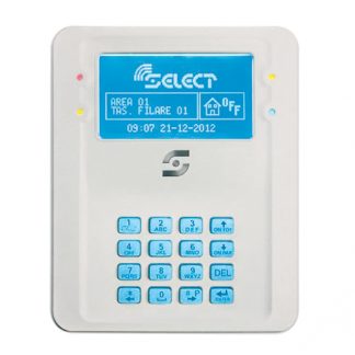 Tastiera su bus. LCD retroilluminato grafico 128x64 caratteri. Tasti in silicone. 4 led di segnalazione. Altoparlante e microfono per messaggistica vocale. 2 zone ingresso (4 zone in triplo bilanciamento). Tamper antiapertura e antirimozione. Temperatura di lavoro +5...+40°C. Dimensioni LxHxP 118x144x29mm. Alimentazione 11...14Vcc, 100mA. Compatibile anche con centrali Select cloud.