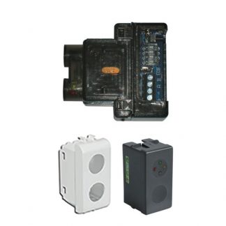 Inseritore di prossimità, consente di inserire / disinserire le centrali bus della serie UNICA e DB9000 utilizzando il tag F590. 4 led ad illuminazione programmabile. Fornito in case plastico adattabile ai vari modelli portafrutto BTicino, Vimar, Gewiss, ABB, AVE, Legrand, occorre specificare il modello di adattatore desiderato in fase di ordine. Temperatura di lavoro +5...+40°C. Dimensioni LxHxP 54x50x24mm. Alimentazione 11...14Vcc, 35...55mA