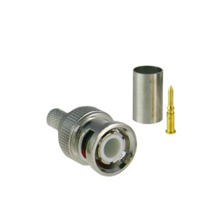 Connettore BNC maschio per crimpare compatibile con RG59 25 x 10 mm 5 g. Prezzo riferito al pz. singolo. Venduto in confezione da 10 pz.