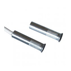 Contatto magnetico in ottone IP65 ad elevata resistenza meccanica per montaggio ad incasso negli infissi. Distanza massima di lavoro 15mm no ferro. Il corpo del contatto è zincato bianco per un migliore risultato estetico e una maggiore resistenza alla corrosione. Adatto per il montaggio su infissi di alluminio, legno, PVC e in genere infissi di materiale non ferromagnetico. L'ampia distanza di intervento ne permette l'installazione anche su infissi con elevate tolleranze o giochi. La parte reed contiene una ampolla reed incapsulata ermeticamente con resina poliuretanica insieme ad un loop di tamper per ridurre le possibilità di effrazione. Funzionamento: contatto reed uscita NC con magnete vicino. Connessione a filo (2 per contatto + 2 per tamper). Cavo lungo 0,3mt. Dimensioni Ø10x35mm. Il prezzo si riferisce al singolo contatto. Venduto in confezione da 10 pezzi