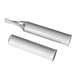 Contatto magnetico in termoplastico BIANCO IP65 per montaggio ad incasso negli infissi. Distanza massima di lavoro 15mm. no ferro. Adatto per il montaggio su infissi di alluminio, legno, PVC e in genere infissi di materiale non ferromagnetico. Funzionamento con reed uscita NC con magnete vicino. Connessione a filo (2 per contatto + 2 per tamper). Lunghezza cavo 0,3mt. Dimensioni Ø8x35mm. Il prezzo si riferisce al singolo contatto. Venduto in confezione da 10 pezzi