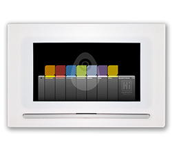 Tastiera touch screen 10" per montaggio a INCASSO. Interfaccia grafica Hi Vision. Cornice in plexiglass retro laccata bianco (altri colori RAL a richiesta). Completa di scatola da incasso. Supporta tutte le funzioni di un impianto domotico integrato con i controllori Hi Control. Connessione via IP Gigabit RJ45 con dispositivi Hi Control; compatibile con protocollo RTSP. Alimentatore esterno fornito in dotazione (230Vac/ 13,8Vcc. 16 milioni di colori. Dimensioni esterna cornice LxHxP 324x243x6 mm. Profondità incasso 67 mm.