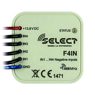 Trasmettitore radio 868 MHz abbinabile ai moduli ricevitore R01, R02 e RT02, montaggio in scatola da incasso o esterno parete. 4 canali ingresso, possibilità di comandare 4 ricevitori in modo indipendente o un numero illimitato di ricevitori simultaneamente. Temperatura di lavoro -10...+55°C. IP20. Conforme alle norme EN300220-1, EN300220-2. Dimensioni LxHxP 47,5x47,5x20mm. Alimentazione 12...14Vcc, 0,4mA in stand-by.