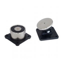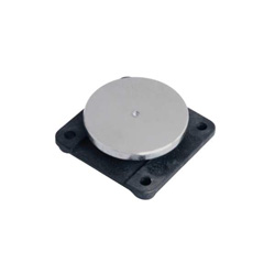 Controplacca per fermi elettromagnetici. Permette una escursione angolare del piattello di 30° totali. Con ammortizzatore urti. Piattello in acciaio. Struttura in termoplastico nero. Dimensioni LxHxP 65x65x22mm Ø45mm