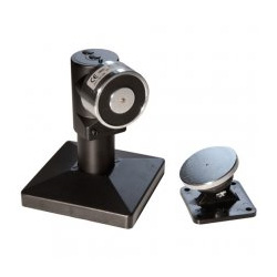 Controplacca con snodo per fermi elettromagnetici. Permette un'escursione angolare del piattello di 120° totali. Con ammortizzaatore urti. Piattello in acciaio. Struttura in termoplastico nero. Dimensioni LxHxP 65x65x48mm Ø45mm