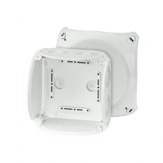 Box di giunzione in policarbonato resistente agli urti (IK09), colore RAL 7035 (GRIGIO MOLTO CHIARO). Grado di protezione IP66. Superficie superiore forabile per passaggio cavi telecamere. Resistente ai raggi UV, alle escursioni termiche, agli urti. Sistema che permette di verificare la chiusura del box visivamente. Dimensioni LxHxP 130x130x77 mm.