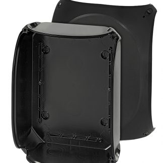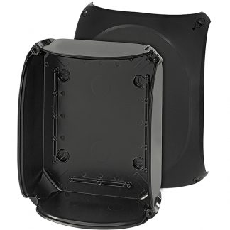Box di giunzione in policarbonato resitente agli urti (IK09), RAL 9011 (GRIGIO MOLTO SCURO). Compatibile con telecamere. Grado di protezione IP66/67/69 in base al tipo di installazione. Superficie superiore forabile per passaggio cavi telecamere. Resistente ai raggi UV, alle escursioni termiche, agli urti ed alle polveri saline (ideale anche per installazioni in zone costiere). Sistema che permette di verificare la chiusura del box visivamente. Dimensioni LxHxP 255x355x122 mm.