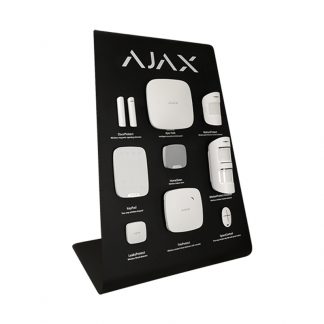Espositore in legno per dimostrazioni - Resistente e di alta qualità - Include kit interamente funzionante - Contenuto: Hub-W (pannello con batteria di riserva), 1 rilevatore di movimento PIR MotionProtect-W, 1 contatto magnetico porta/finestra DoorProtect-W, 1 telecomando SpaceControl-W, 1 tastiera indipendente KeyPad-W, 1 sirena per interni HomeSiren-W, 1 sirena per esterni StreetSiren-W, 1 rilevatore di inondazione LeaksProtect-W, 1 rilevatore di fumo FireProtect-W, 1 rilevatore per esterni MotionProtectOutdoor-W e una cornice digitale di 1 per mostrare i video di Ajax.
