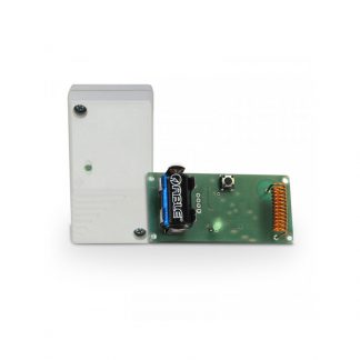 MDTEMP è un sensore wireless remoto che consente alla centrale serie VILLEGGIO di controllare la temperatura rilevata in punti remoti rispetto alla sua posizione installativa. La centrale visualizza nel suo display la temperatura rilevata dal modulo remoto e con caratteri più piccoli quella rilevata dal suo sensore di temperatura integrato. Questo modulo può essere installato sia in ambienti interni che esterni ad un altezza tipica di un termostato ambiente. Dimensioni e peso: L 34 x P 50 x H 19, 50g. Assorbimento: 1,5µA a riposo, 17 mA in trasmissione. Alimentazione: 3,6V forniti da batteria tipo ER14250.