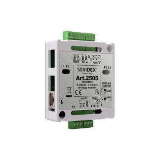 Modulo relè i/o 2in/2out per sistema Ipure. Relè ethernet2 (C, NC, NO). Ingressi 2 (Attivo basso). Tempo di attivazione relè, modo operativo relè (standard, ripetitore di suoneria). Alimentazione 12Vdc o PoE standard IEEE 802.3af Class 0.