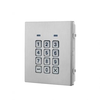 Modulo controllo accessi con tastiera numerica serie 4000 per sistemi VX2300 e IPure, antivandalico (IK07) in acciaio satinato, 3 relè. Funzionamento standalone. Programmazione tastiera. Retroilluminazione tastiera blu, programmabile. Placca antivandalica IK07 in acciaio inox satinato. Alimentazione: 12/24 Vac/dc.