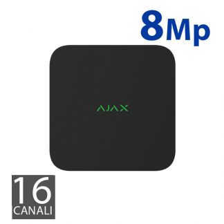 Videoregistratore di rete NVR 16 canali. Compatibile con tutti gli hub AJAX. Risoluzione fino a 4K (25/30 fps). Banda fino a 100 Mbps. Capacità: 16 TB di memoria, HDD non incluso. Interfaccia HDD: connettività SATA dimensione 3,5". Completo di pannello di montaggio, SmartBracketCavo. Peso: 700 g. Dimensioni: 200 x 200 x 45 mm. Alimentazione: 110-240 V, 50/60Hz. Consumo fino a 24W. Colore nero.