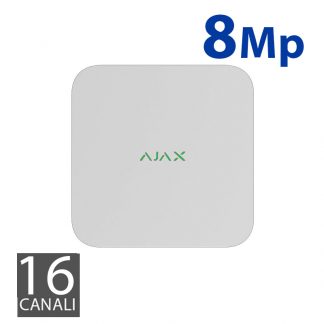 Videoregistratore di rete NVR 8 canali. Compatibile con tutti gli hub AJAX. Risoluzione fino a 4K (25/30 fps). Banda fino a 100 Mbps. Capacità: 16 TB di memoria, HDD non incluso. Interfaccia HDD: connettività SATA dimensione 3,5". Completo di pannello di montaggio, SmartBracketCavo. Peso: 700 g. Dimensioni: 200 x 200 x 45 mm. Alimentazione: 110-240 V, 50/60Hz. Consumo fino a 24W. Colore bianco.
