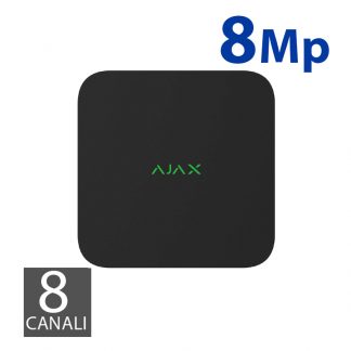 Videoregistratore di rete NVR 8 canali. Compatibile con tutti gli hub AJAX. Risoluzione fino a 4K (25/30 fps). Banda fino a 100 Mbps. Capacità: 16 TB di memoria, HDD non incluso. Interfaccia HDD: connettività SATA dimensione 3,5". Completo di pannello di montaggio, SmartBracketCavo. Peso: 700 g. Dimensioni: 200 x 200 x 45 mm. Alimentazione: 110-240 V, 50/60Hz. Consumo fino a 24W. Colore nero.
