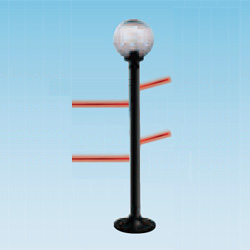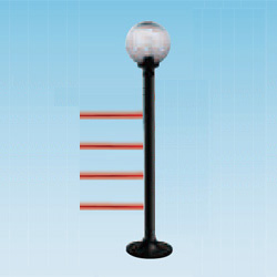 Colonna IR POLITEC modello PARVIS MES (tipo lampione da giardino) per esterno. con tecnologia SMA (single man aligment) consente l'alineamento con un solo operatore in quanto i leds ad altissima luminosità ed il buzzer su ciascuna ottica, permettono il raggiungimento del massimo valore di allineamento senza uso di strumentazione supplementare, viene attivato semplicemente attraverso un pulsante posto su ciascuna ottica. Altezza 2,00mt. 8 raggi 4TX + 4RX. Portata max in interno 400mt; portata max in esterno 100mt. Sincronizzazione filare. Dispositivo di disqualifica automatica in caso di condizioni climatiche estreme. Funzionamento selezionabile AND/OR. Uscita di allarme NC/NO. Funzione RANDOM DELAY che ritarda l'allarme di un tempo variabile. Grado di protezione IP54. Alimentazione raggi 10...30Vcc 150mA, riscaldatori 10...30 Vac/cc 50W. Diametro 8cm. PRIVA DI GLOBO