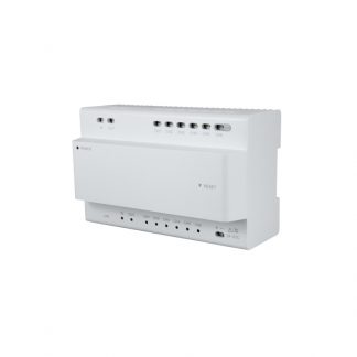Convertitore 2 fili a IP. 6 gruppi di 2 fili TCP / IP con RJ45. Alimenta dispositivi a 2 fili, 2 canali per hub in cascata. Accessorio per piastra e monitor, montaggio in superficie o traccia. Alimentazione: DC 24 V / 2,5 A max.