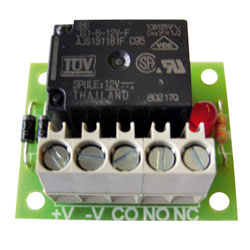 Scheda con relé singolo scambio 10A. Led di segnalazione di attivazione del relé. Dimensioni LxHxP 40x32x20mm. Alimentazione 12Vcc, 34mA. Prezzo riferito alla singola scheda. Venduto in confezione da 5 pezzi.