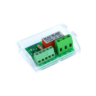 Scheda relé amplificata a bassa tensione per carichi da 250Vac, 16A. Comando sia positivo che negativo. Elevato isolamento tra ingressi bassa tensione e uscita a tensione di rete. Contenitore in policarbonato trasparente con asola di fissaggio. Dimensioni LxHxP 75x25x48mm. Alimentazione 10..15Vcc / 24...28Vcc, 40mA.