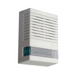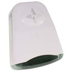 Sirena piezoelettrica bitonale con lampeggiatore in materiale termoplastico bianco e calotta trasparente per interni. Elevata potenza acustica, suono bitonale 2800-3100Hz 0,5s/0,5s, 110dB a 1mt. Lampeggiatore Xeno 60flash/min. Protezione a microinterrutore contro l'apertura. Connessioni a morsetti. Temperatura funzionamento -20...+60°C. Alimentazione 12Vcc 290mA. Dimensioni LxHxP 110x155x55mm