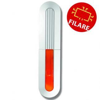 Sirena filare universale EGO colore BIANCA con gemma ARANCIONE. Materiale composto da un mix ABS/Policarbonato, tripla verniciatura. Autoalimentata, suono programmabile, segnalazione ottica di inserimento/disinserimento e lampeggio permanente di inserito,programmabili. Controllo del livello di tensione di alimentazione, dello stato della batteria tampone, dell’ altoparlante, delle linee tamper, dei finali audio tramite led a bordo e uscita open collector. Possibilità di montaggio orizzontale o verticale. Pressione sonora a 3 metri 105 dB. Tensione di alimentazione 12Vcc (10,5-14Vcc). Batterie alloggiabili: 12Vcc 2,3 Ah, 12Vcc 2,9 Ah. Assorbimento a riposo 16 mA. Assorbimento suono 1,5 A. Grado di protezione IP44. Protezione antischiuma con doppio modulo ottico EGO-AS integrato, non genera allarme in caso di passaggio di insetti. Temperatura di lavoro -25...+55°C. Dimensioni LxHxP 120x530x85 mm. Peso (batteria esclusa): 2,2 Kg