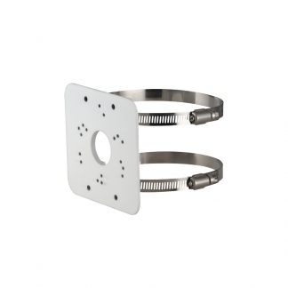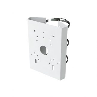 Staffa da palo per telecamere dome, per esterni. Range diametro 67~127 mm. Colore bianco. Pin cavo. Dimensioni: 136 mm (H) x 127 (L) x 62.4 (P). Corpo in acciaio.